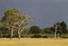 An isolated thunder storm in the pre-dawn flashes streaks of lightning, and a watery sun struggles over the eastern horizon, sending shafts of sunlight to pierce the bruised sky. Giraffe, ever curious, glide serenely through the grass, a Zebra stallion, resplendent in black and white, holds his head erect and regal, nostrils flaring. A pair of Egyptian Geese stand motionless, reflections mirrored in a pan. A male Steenbok with tiny spikes for horns, poses close to the road, huge ears pivoting, nose wet and black, twitching, coat a glossy sheen in the sunlight, dainty hooves that would doubtless fit into a thimble ready to dart into the brush.