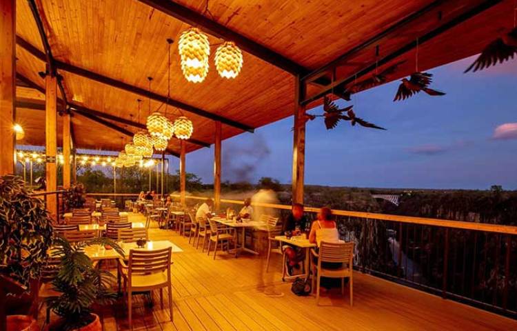 Embark on a trip to the one-of-a-kind Lookout Café, perched 120 meters above the turbulent rapids of the Zambezi River. This all-inclusive activity is set against the backdrop of the iconic Victoria Falls Bridge, which hangs over the spectacular chasm of the Batoka Gorge. During the rainy season, wisps of the spray from the rainforest curl around the edge of the rock face near the bridge. Creative cocktails and other beverages are included in the activity. From the vantage point of the café, guests can watch the bright rafts plummet through the rapids below, or adrenalin lovers soaring through the air on one of the exciting high wire activities.